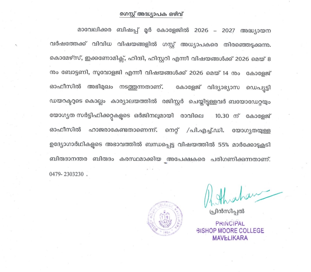 Guest Faculty Vacancies in 2026-27 Academic Year